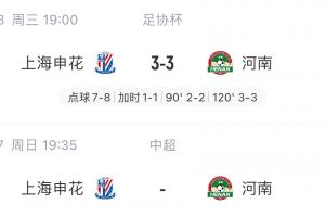 bsports-四天后再战!申花与河南鏖战120分钟+点球,本周日双方将联赛相遇